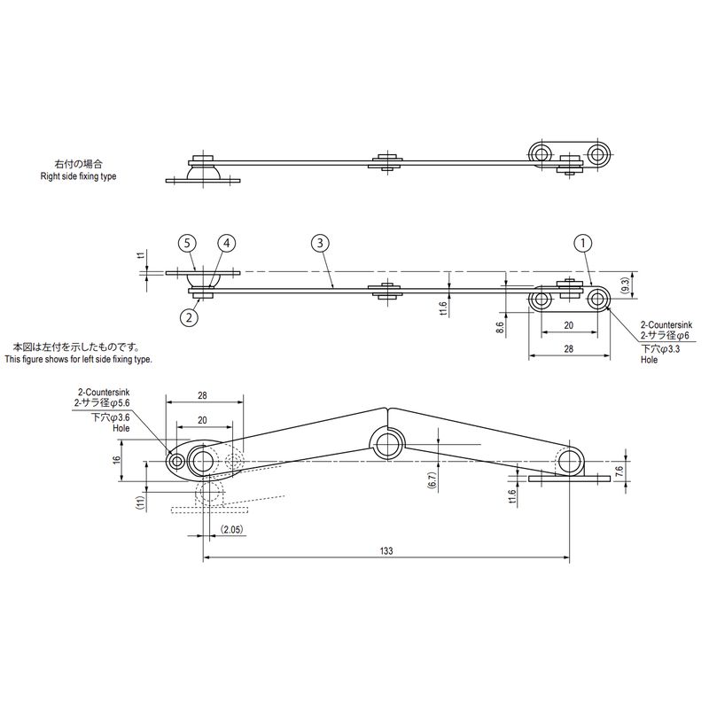サラねじ又はサラリベットで取付けの場合は、取付け側に面取り加工を施してください。