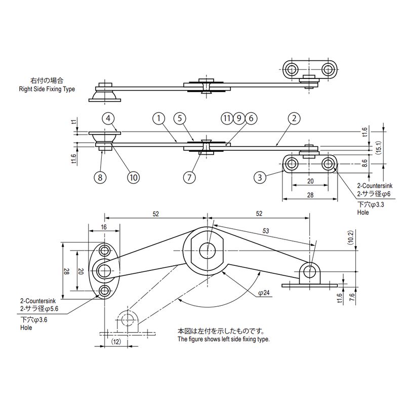 サラねじ又はサラリベットで取り付ける場合は、取付側に面取り加工を施してください。