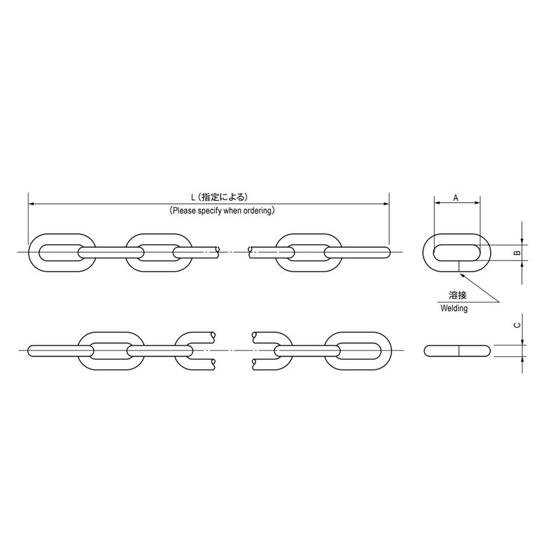 傷、サビ、変形のあるクサリは万一の事故防止のため、使用しないでください。