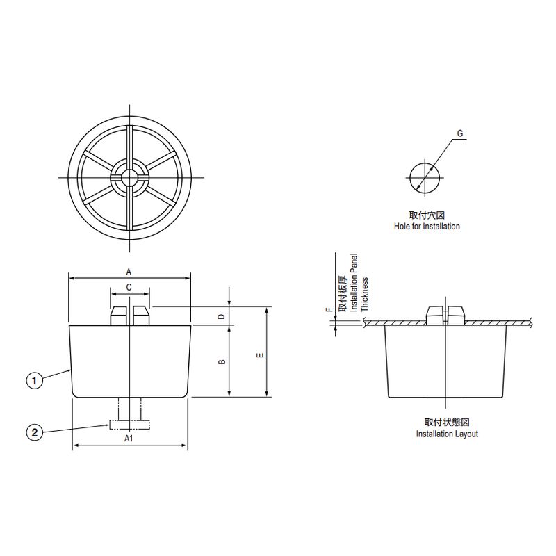 ノックピンを押し込むだけで、簡単に取り付けられるプラスチック製のフットです。