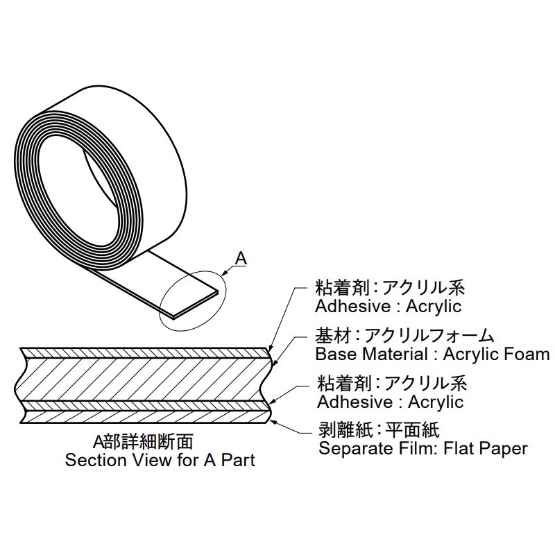 VHBアクリルフォームテープは、特殊技術により得られた柔軟かつ強靭なアクリルフォーム基材の両側に、耐候性・耐薬品性に優れたアクリル系粘着剤をもつ新しい概念の接合材です。