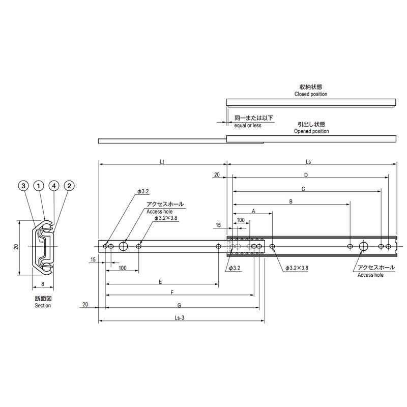 超小型スライド3/4トラベル(インナーメンバーの引出し量がアウターメンバーの長さの約3/4である方式)ニッケルメッキ仕様も製作できます。