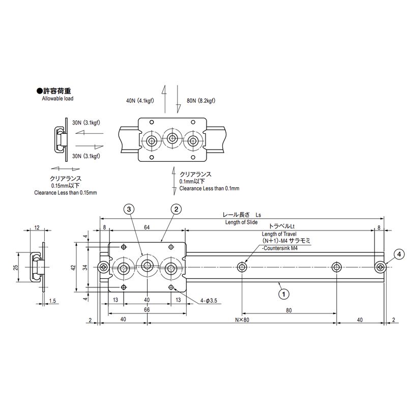 スライダーの脱落防止用として両側にストッパーを取り付けていますがストッパーに高負荷が作用する用途には、別に外部ストッパーを取り付けてください。