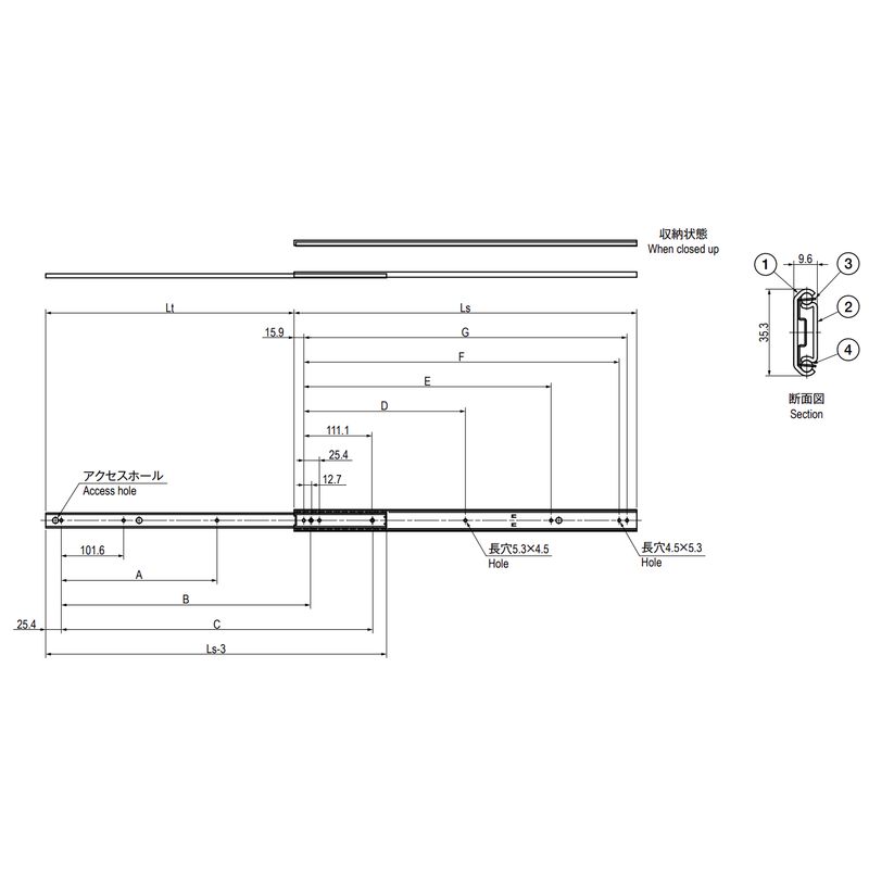 シングルスライド、3/4トラベル製品です。