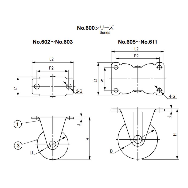 No.600 (合成ゴム車輪)固定型