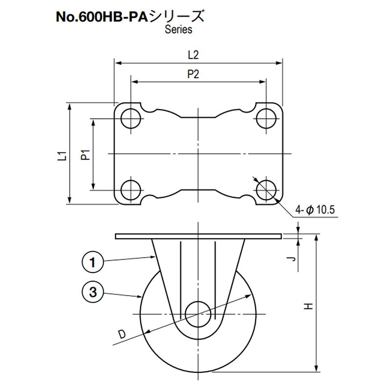 No.600HB-PA (ポリウレタン車輪)ローラーベアリング入り重量用固定型