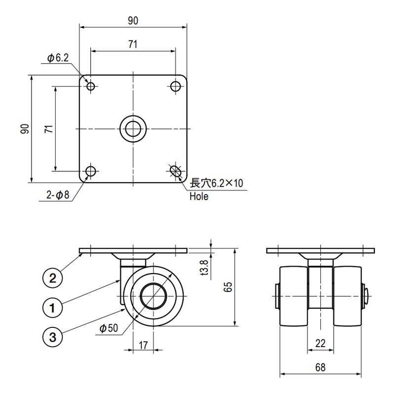 TCA-T50-POM 低床式双輪キャスター 自在型