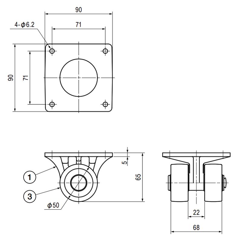 TCA-T50-POM-R 低床式双輪キャスター 固定型