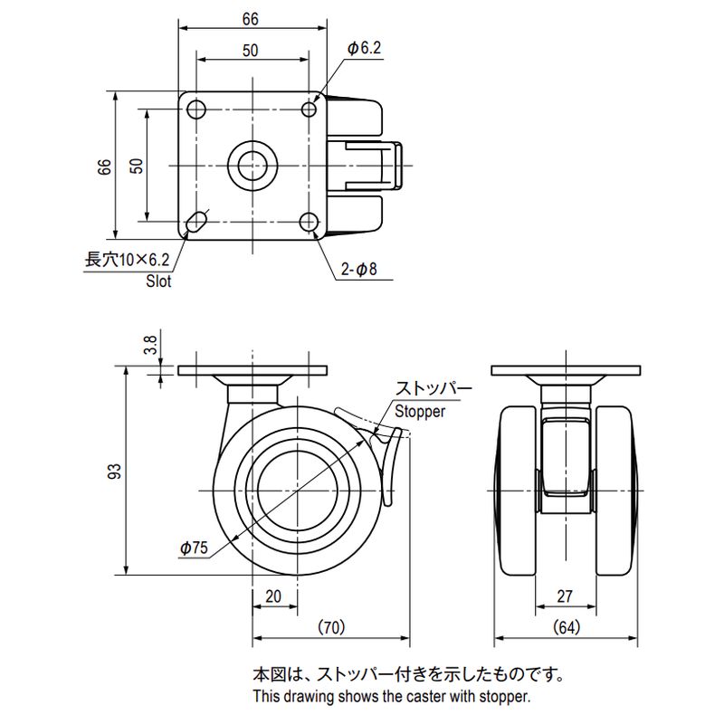 軽量で走行安定性・旋回性能に優れたキャスターです。