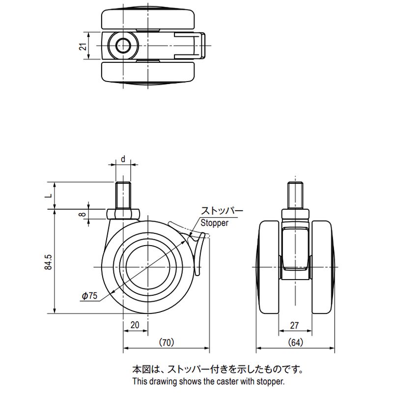 軽量で走行安定性・旋回性能に優れたキャスターです。