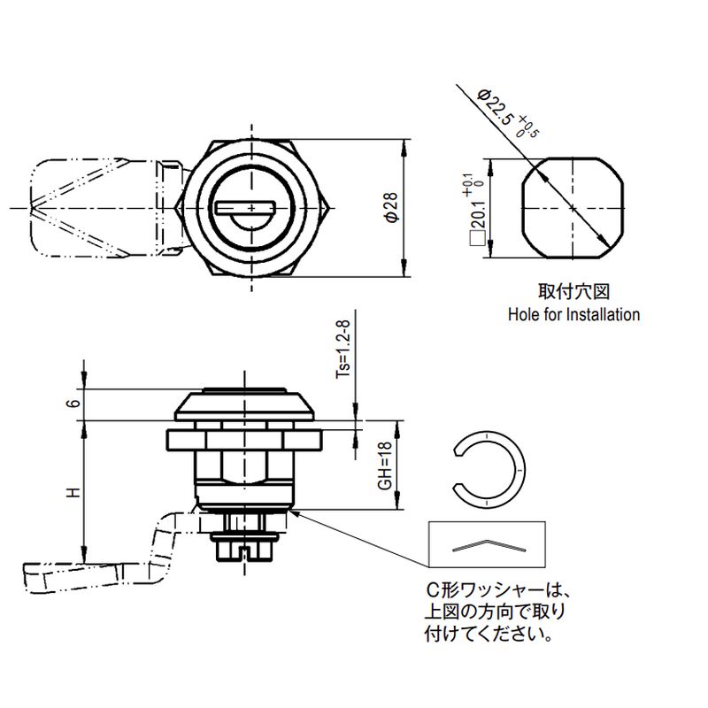 栃木屋 TEL-1048-U14 シリンダークォーターターン
