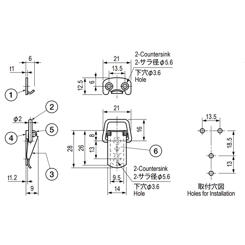 サラねじ又はサラリベットで取り付ける場合は、取付側に面取り加工を施してください。