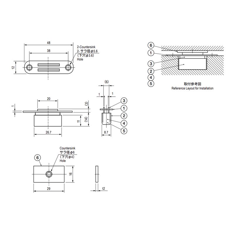 埋込型のマグネットキャッチです。スペースを有効利用できます。