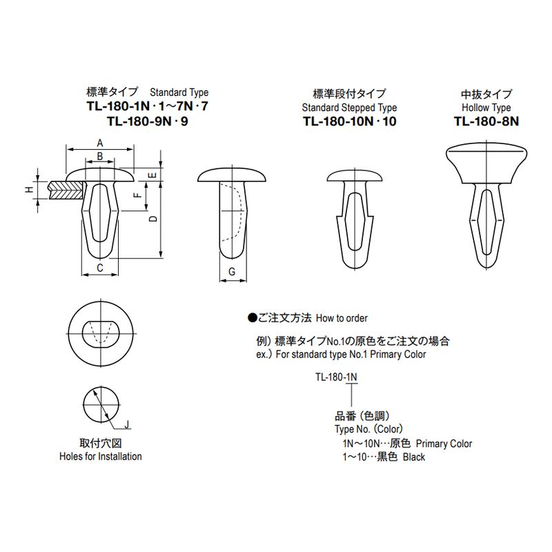 2.挿入力、抜去力の測定値は当社試験材にて測定(常温・常湿)しておりますので実際に使用される取付板の材質、穴の加工方法、塗装等により多少違ってくる場合があります。