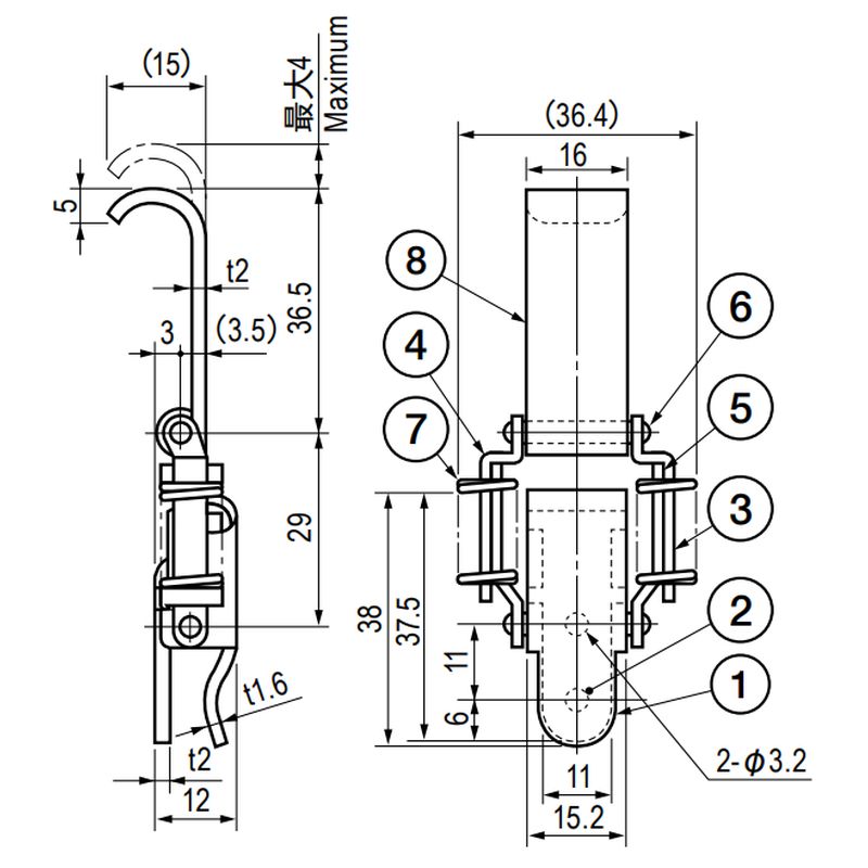 スプリングによる締付力があるコーナー用のアームキャッチです。