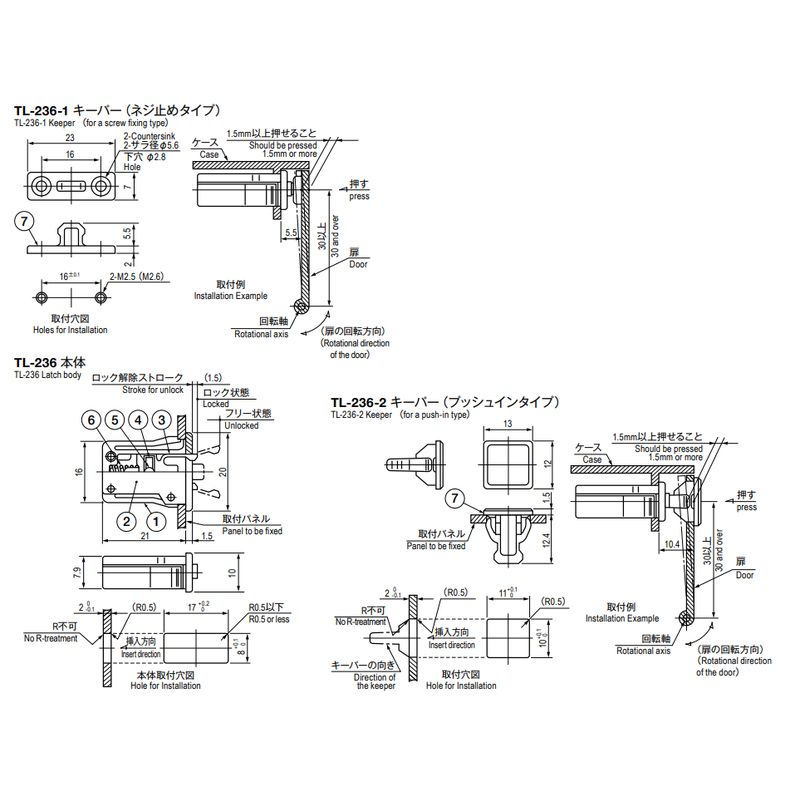 好評のミニラッチS・L(TL−304/TL−297)のシリーズ品です。操作が非常に容易なワンタッチ方式(プッシュロック・プッシュオープン)を採用しています。