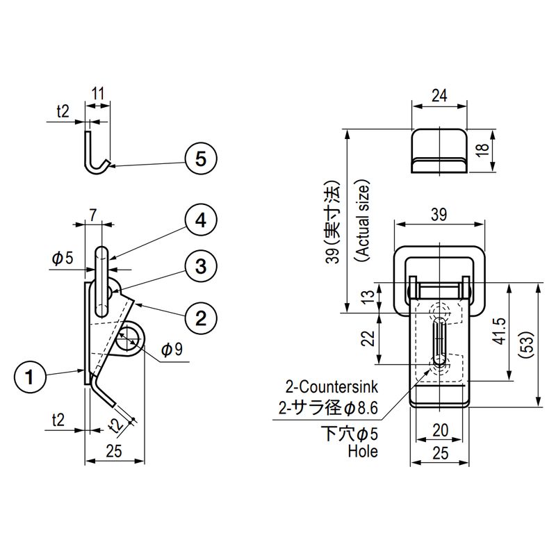 南京錠(TL−285J)用の穴があるステンレス製のアームキャッチです。