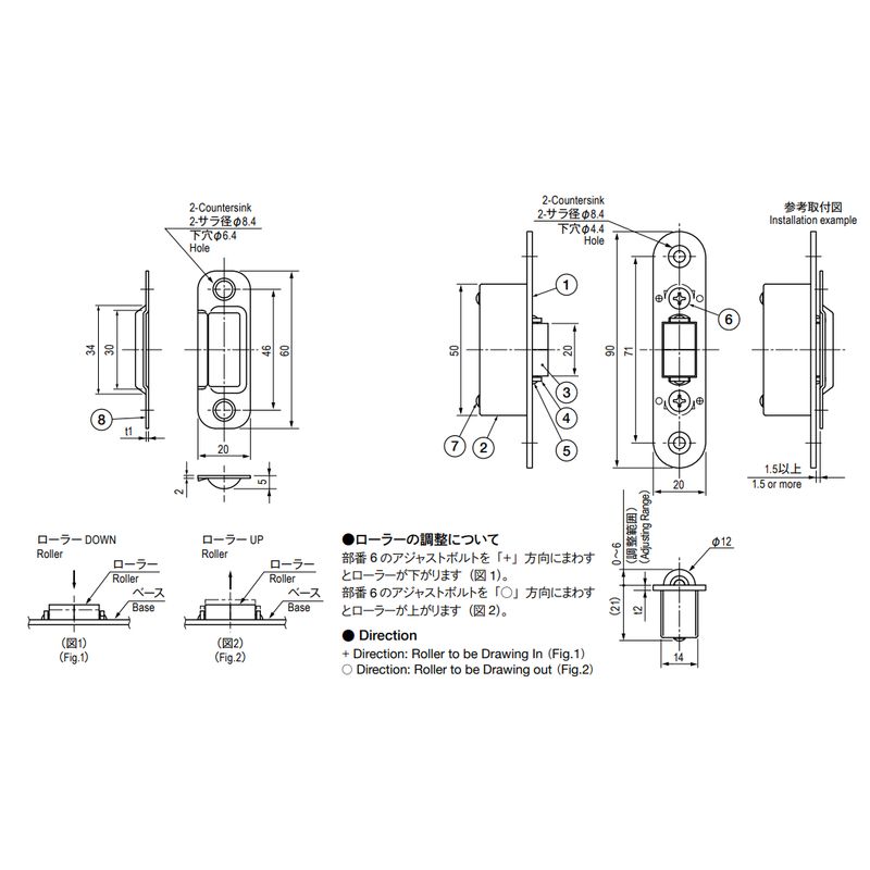 ローラー調整時、部番6のアジャストボルトはローラーが平行になるよう、均等にまわしてください。