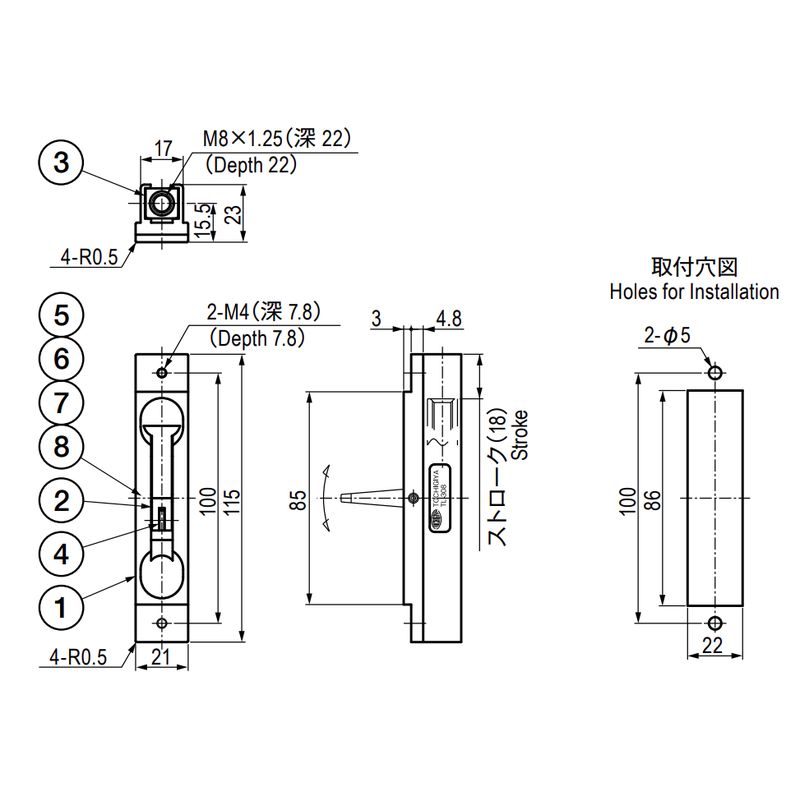 扉内収納タイプのラッチです。ロッド棒でのロック・アンロックがレバー操作のみで容易にできます。