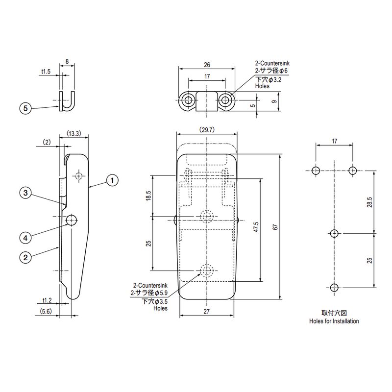 サラねじまたはサラリベットで取り付ける場合は、取付側に面取り加工を施してください。
