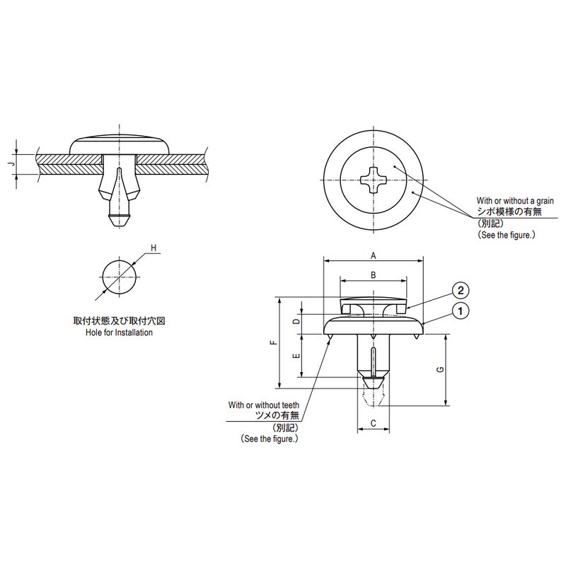 実際に使用される取付板の材質、穴の加工方法、処理等により多少違ってくる場合があります。