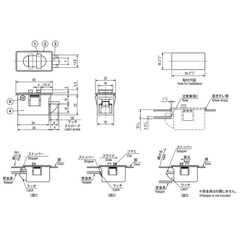 オープンホールド機構により、扉のロック・解除が容易にできるラッチです。取付穴に差し込むだけで取り付けられます。