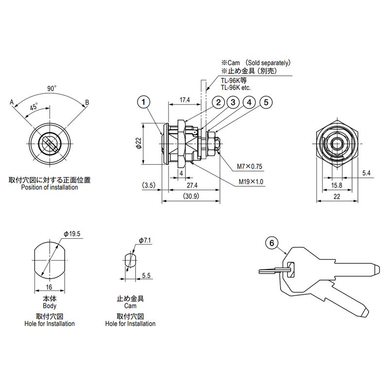 豊富な鍵違い(受注生産)が製作可能な錠前です。樹脂製のキーキャップ仕様(受注生産)も承ります。