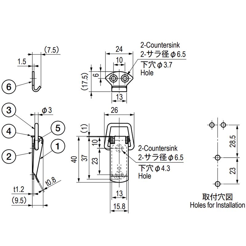 サラねじまたはサラリベットで取り付ける場合は、取付側に面取り加工を施してください。