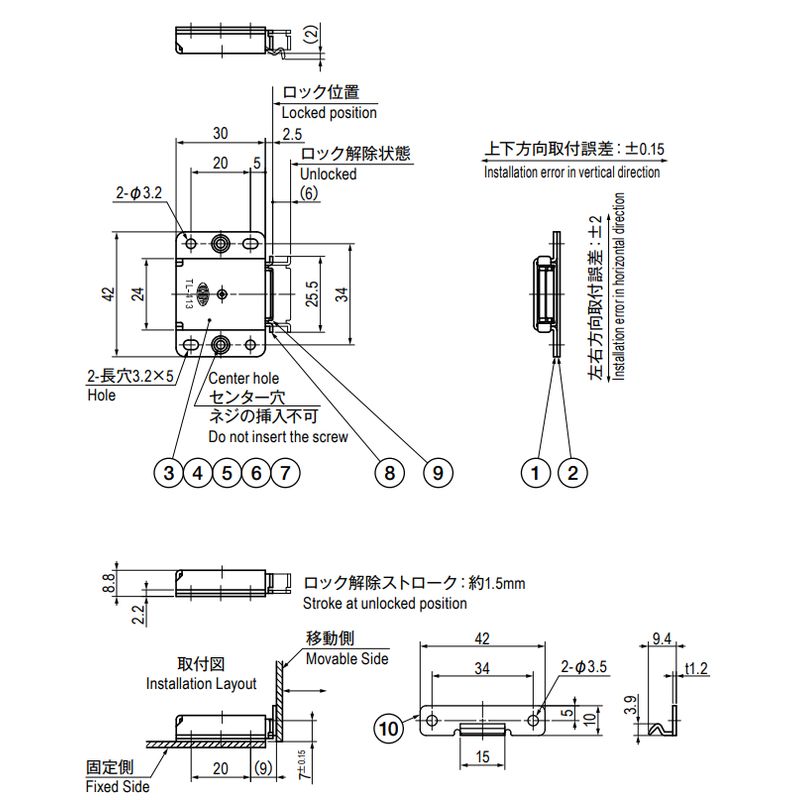 センター穴は取付穴ではないため、使用しないでください。