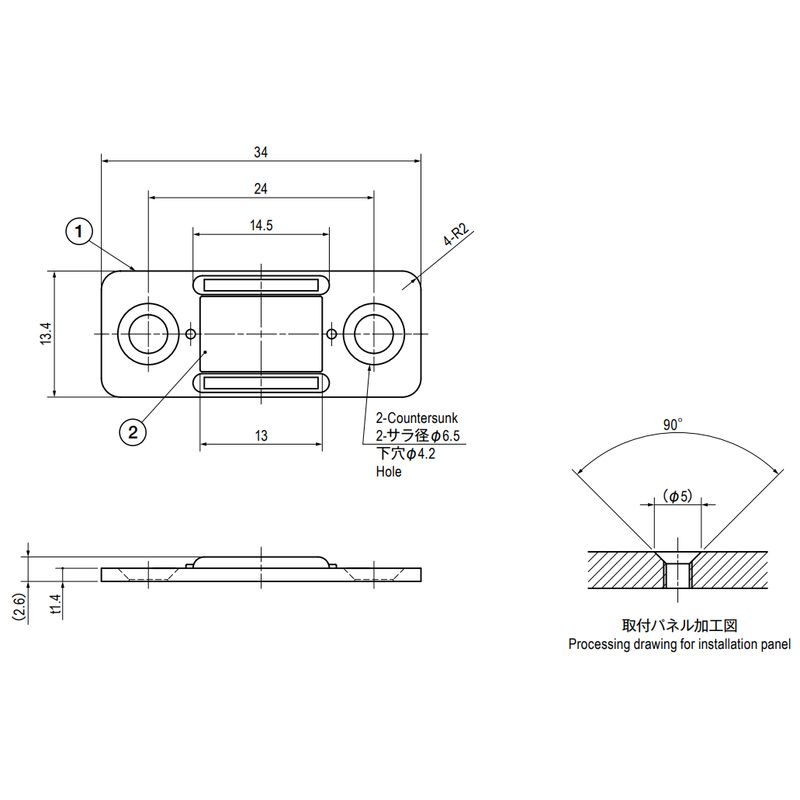 取付パネル側には、φ5のサラ加工を施してください。
