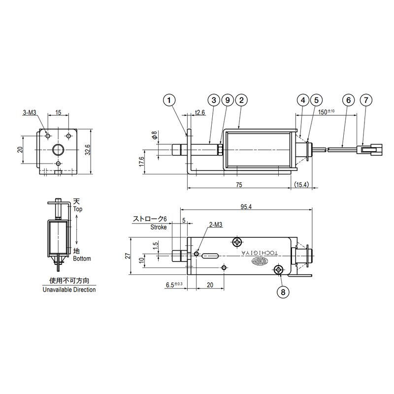プッシュソレノイドを組み込んだラッチユニットです。通電によりラッチが飛び出します。連続通電時の温度上昇が少ないため、ラッチ周囲の熱対策が簡素化可能です。ソレノイドはコネクタ付きのリード線となっており、配線が容易に行えます。