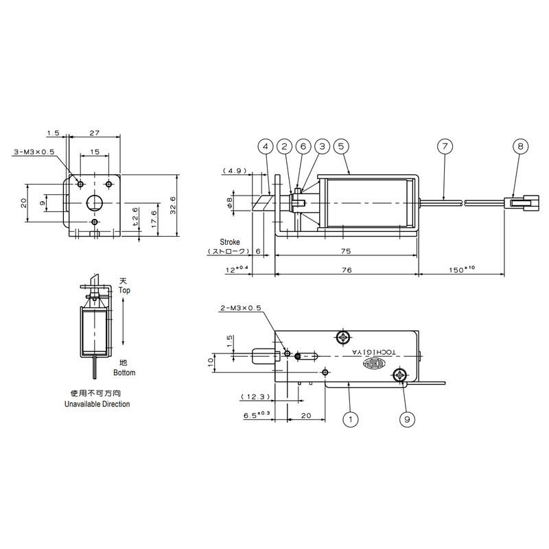本品をM3ねじにて取り付ける際には、ねじ先端がソレノイドに接触しないように注意してください。