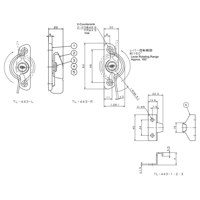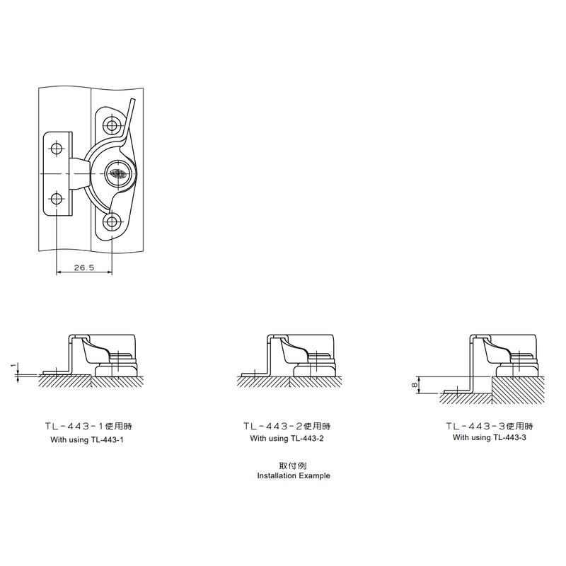 引き戸等の窓枠(サッシ)用の止め金具です。施錠時・解錠時共にクリック感があります。