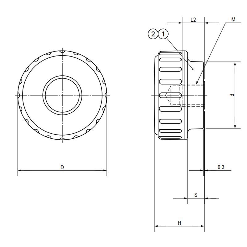 TL-KDF/TL-KDFS ディンプルノブ(雌ねじ)