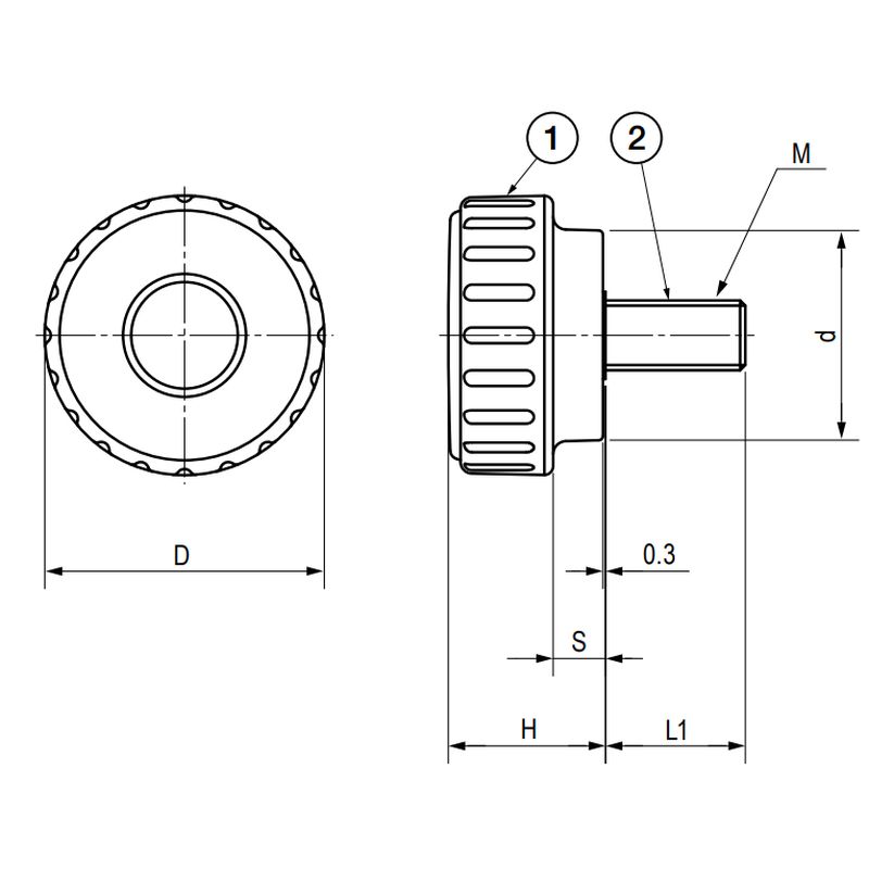 TL-KDM/TL-KDMS ディンプルノブ(雄ねじ)