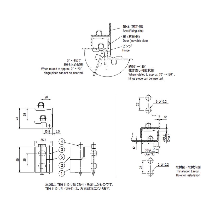 栃木屋 TEH-1110-U71 抜差ヒンジ