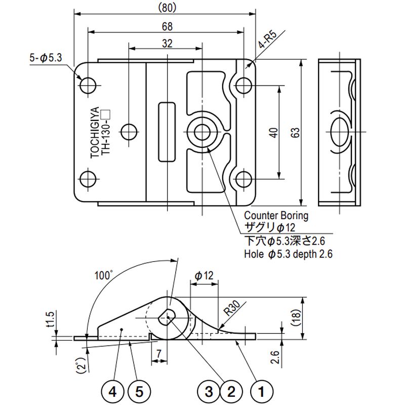 栃木屋 TH-130B-1-12 ソフトダウンヒンジ