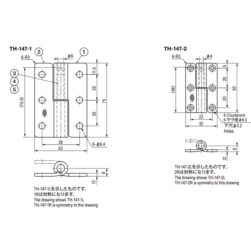栃木屋 TH-147-1L 抜差クリーンヒンジ