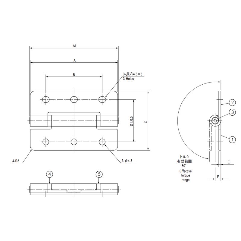栃木屋 TH-149-1 フリーストップヒンジ(フラット型)
