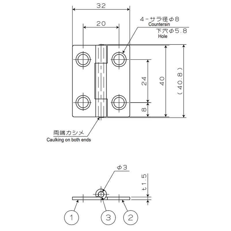 栃木屋 TH-188SUS 平型蝶番(ステンレス・サラ穴)