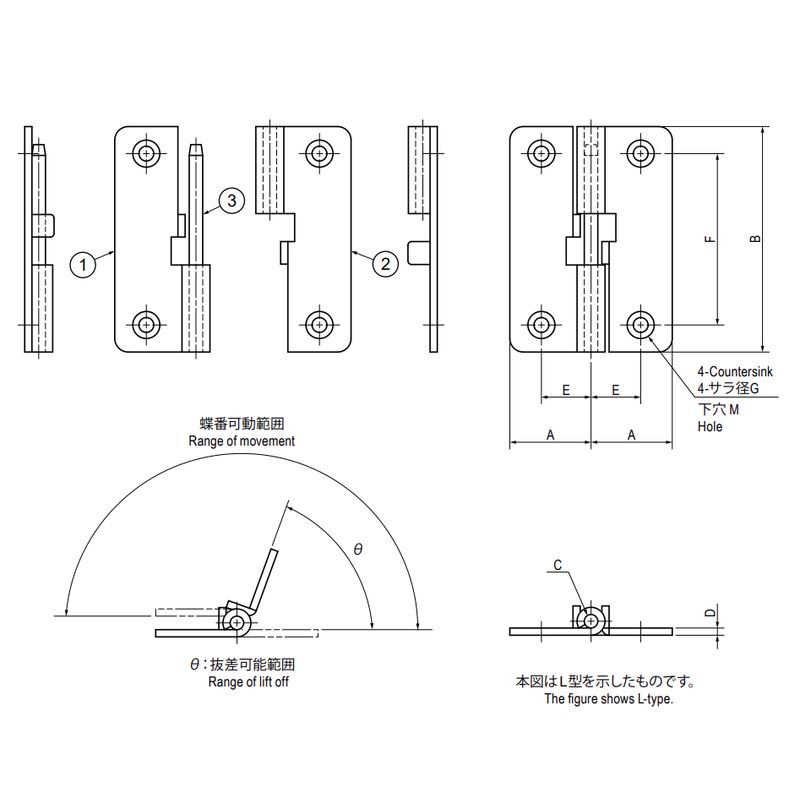 栃木屋 TH-48-1L 抜け止め付蝶番(閉じ付け用)