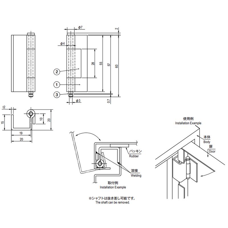 シャフトが抜き差しでき、取り付けが簡単です。E形止メ輪(TH−121E等)もあわせて使用可能です。
