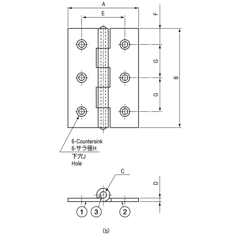 TH-TM 平型蝶番(ステンレス・サラ穴・b)
