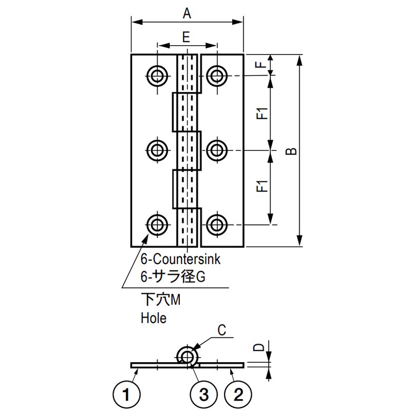 TH-TM 平型蝶番(亜鉛めっき鋼板・サラ穴・b)