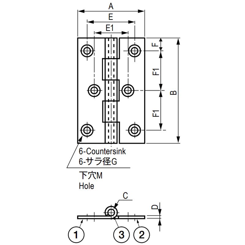TH-TM-90SUS 平型蝶番(ステンレス・サラ穴・c)