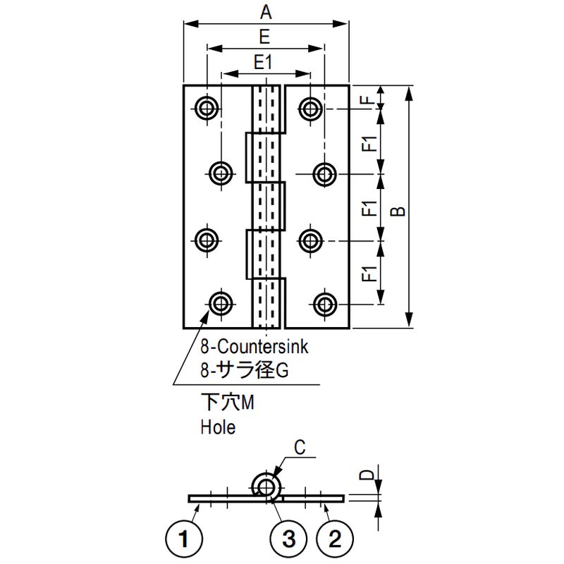 TH-TM-91SUS 平型蝶番(ステンレス・サラ穴・d)