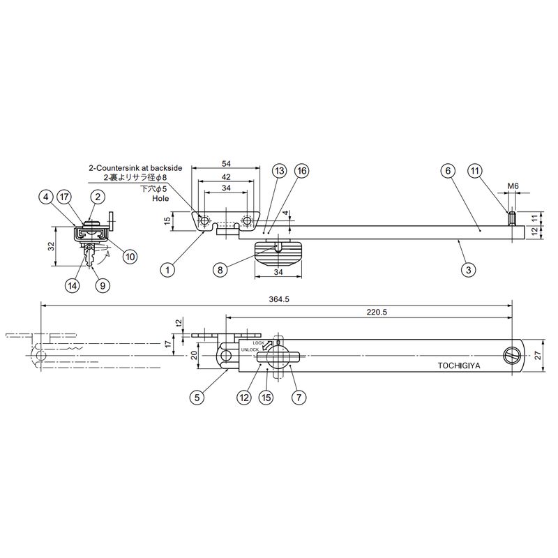 従来品に比べ安全性が向上したストップステーです。6mmステップの採用で扉・蓋のオープン角度を自由に設定できます。ステーロックはハンドルを90度回すだけです。ロック及びロック解除が手軽な操作で行え、安全・確実に固定できます。UNLOCK状態では、約29.4N(3kgf)の力を加えなければ動きません。