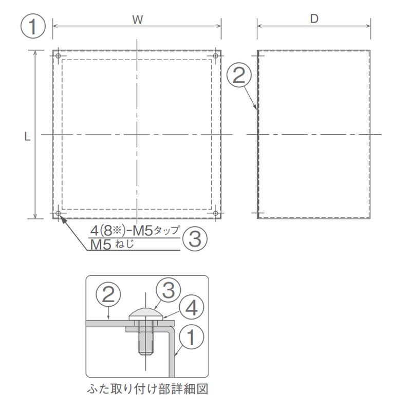 SP□SN プルボックス ステンレス製 平ふた 接地端座なし