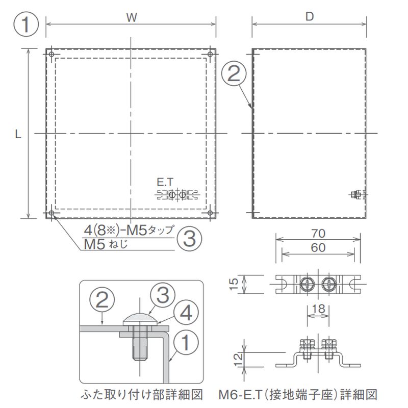 ZE□S2 プルボックス 溶融亜鉛めっき仕上げ 平ふた 接地端座付き
