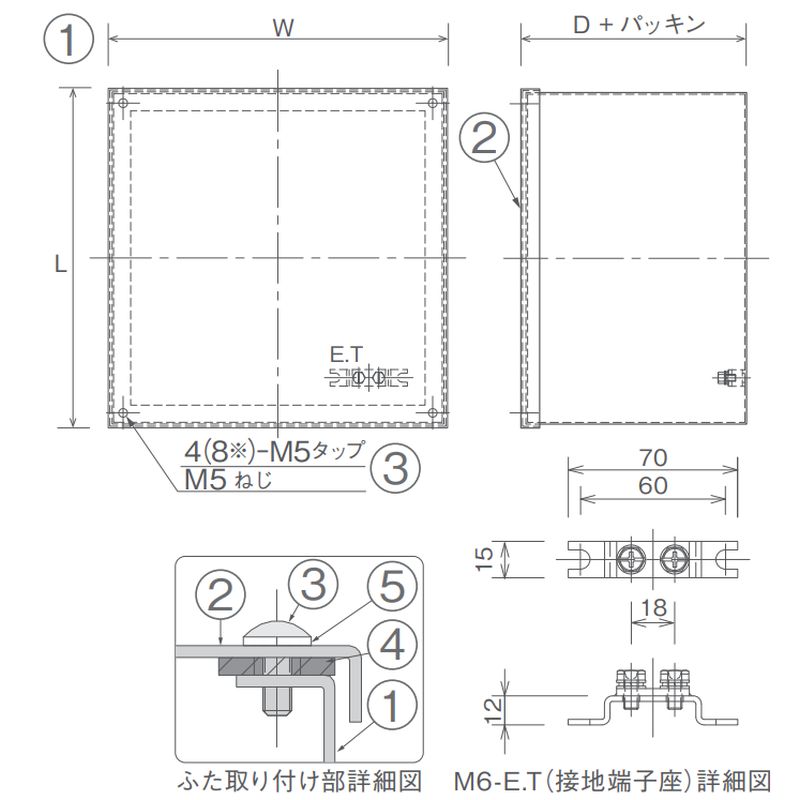 ZE□W2 プルボックス 溶融亜鉛めっき仕上げ 被せふた 接地端座付き